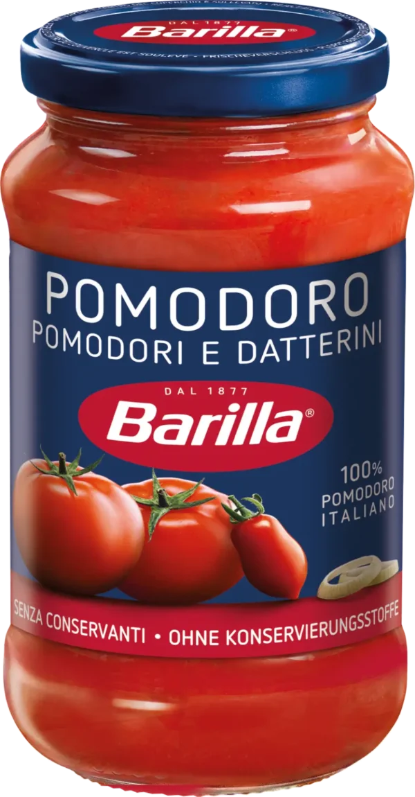 Eine einfache und schmackhafte Sauce aus süßen Datteltomaten. Traditionell hergestellt und ohne die Zugabe von Konservierungsstoffen ist die Barilla Sauce Pomodoro unsere frischeste und mediterranste Sauce.