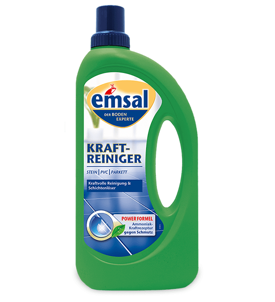 emsal Kraft-Reiniger gleichmäßig pur auf den Boden auftragen (ca. 5 Kappen pro m²).