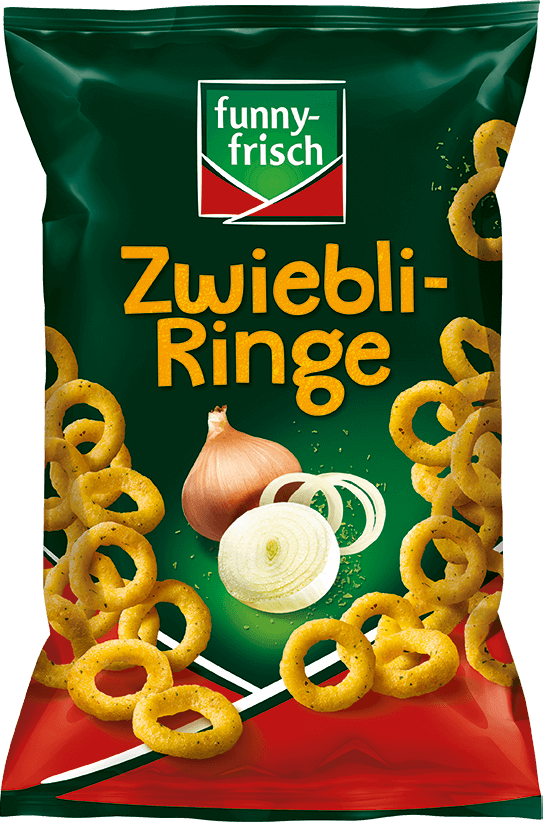Goldgelb gebackene Maisringe mit dem herzhaften Geschmack von gerösteten Zwiebeln und feinen Kräutern – eine runde Sache, wenn es um unwiderstehlich zwiebliges Knabbervergnügen geht! funny-frisch Zwiebli-Ringe – köstlich, röstig, zwieblig!