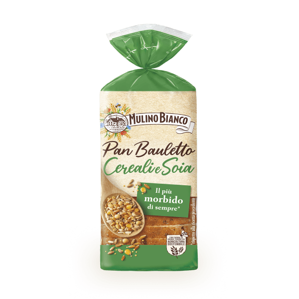 Pan Bauletto mit Getreide und Soja ist aus der Vereinigung von Soja und 8 verschiedenen Getreidearten (Hafer, Gerste, Dinkel, Hartweizen, Mais, Reis, Roggen und Hirse) entstanden.