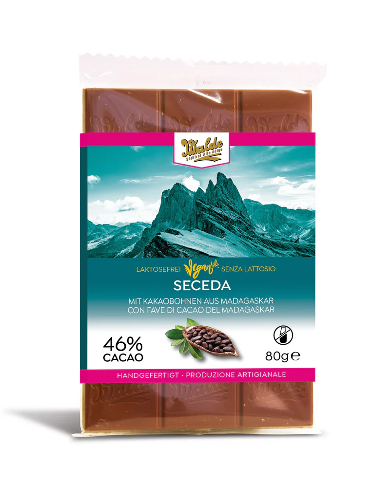 Schokolade mit Kakaobohnen aus Madagaskar – laktosefrei & vegan; „Milchschokolade“: statt Milchpulver wird Mandelpulver verwendet